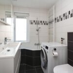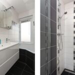 Aan de achterzijde bevindt zich de moderne badkamer met vloerverwarming, inloopdouche, dubbel wastafelmeubel, bad, toilet en handdoeken radiator.