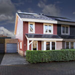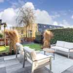 At the rear, the house has been extended, resulting in an exceptionally spacious and light-filled living room with French doors opening onto the garden. The ground floor is finished with stylish tiled flooring and comfortable underfloor heating. The spacious garage/storage room with rear access completes the picture.