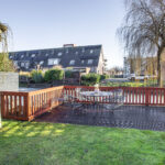 Beautifully landscaped garden along a wide water feature with unobstructed views
