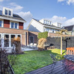 Aan de achterzijde is de woning uitgebouwd, wat resulteert in een bijzonder ruime en lichte woonkamer met openslaande deuren naar de tuin. De begane grond is afgewerkt met een stijlvolle plavuizen vloer met comfortabele vloerverwarming. De ruime garage/berging met achterom maakt het geheel compleet.