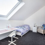 The second floor was completely and high-quality renovated in 2022 and optimally laid out with two full-sized, neatly plastered bedrooms. Thanks to the existing dormer and the addition of a large Velux roof window, both rooms enjoy excellent natural light. A practical separate laundry room has also been created, housing the laundry appliances and the central heating system.