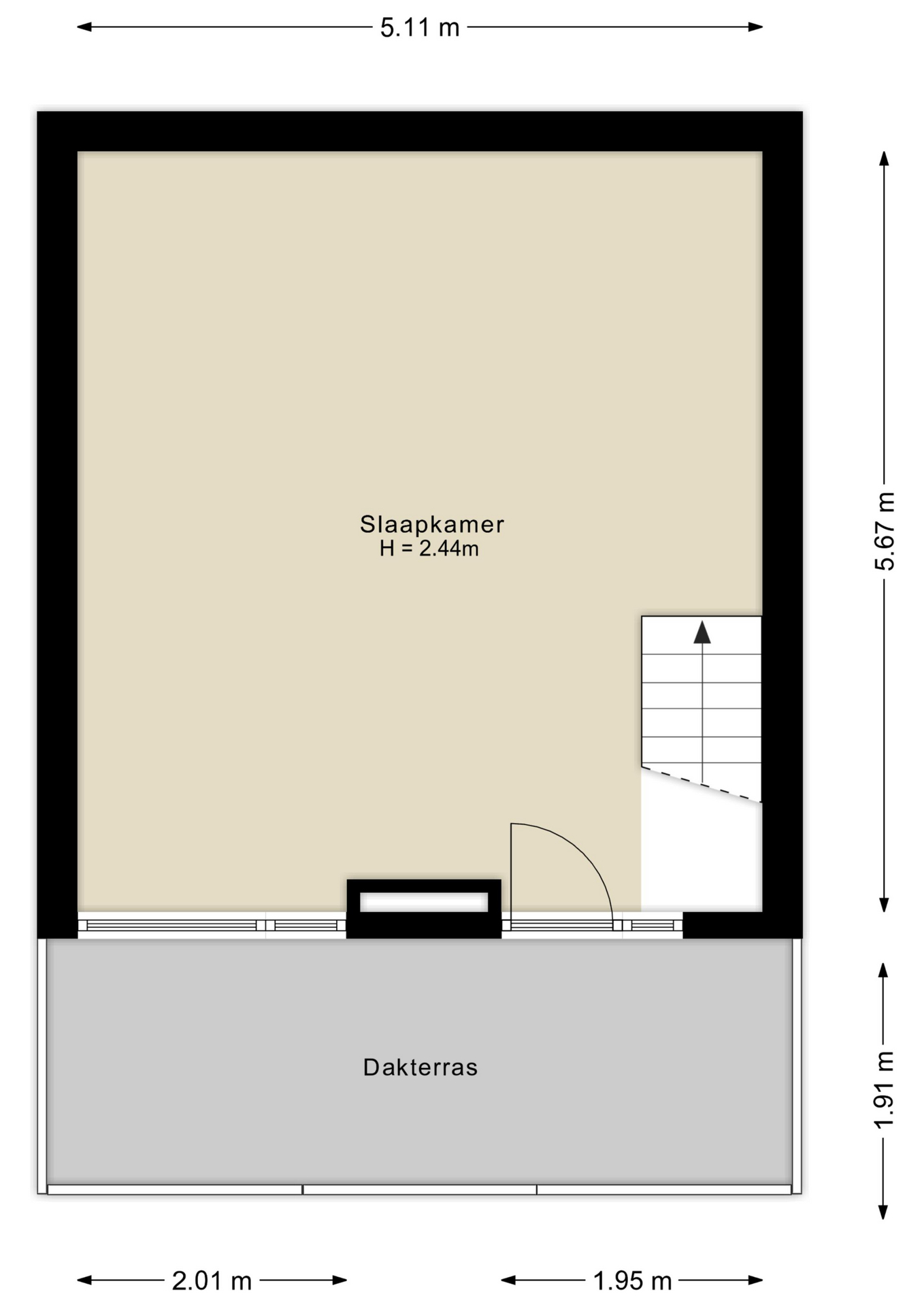 De bovenverdieping is één grote open ruimte met toegang tot het ruime, zuidelijk gelegen dakterras. Perfect als gastenverblijf voor expats, studio voor een studerend kind, of luxe werkplek aan huis. Een tweede badkamer kan hier nog eenvoudig worden gerealiseerd.
