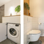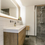 De moderne en luxe keuken (L-opstelling) aan de voorzijde (vernieuwd in 2023) is voorzien van diverse inbouwapparatuur (o.a. luxe Bora inductiekookplaat en Quooker) en uitgevoerd in een strakke, eigentijdse stijl. De badkamer (vernieuwd in 2022) is voorzien van een houten designmeubel en inloopdouche met een frisse en moderne uitstraling. Ook is de wasmachine in de badkamer aanwezig, opgesteld in een ombouwkast. Ook is er een aparte toiletruimte aanwezig.