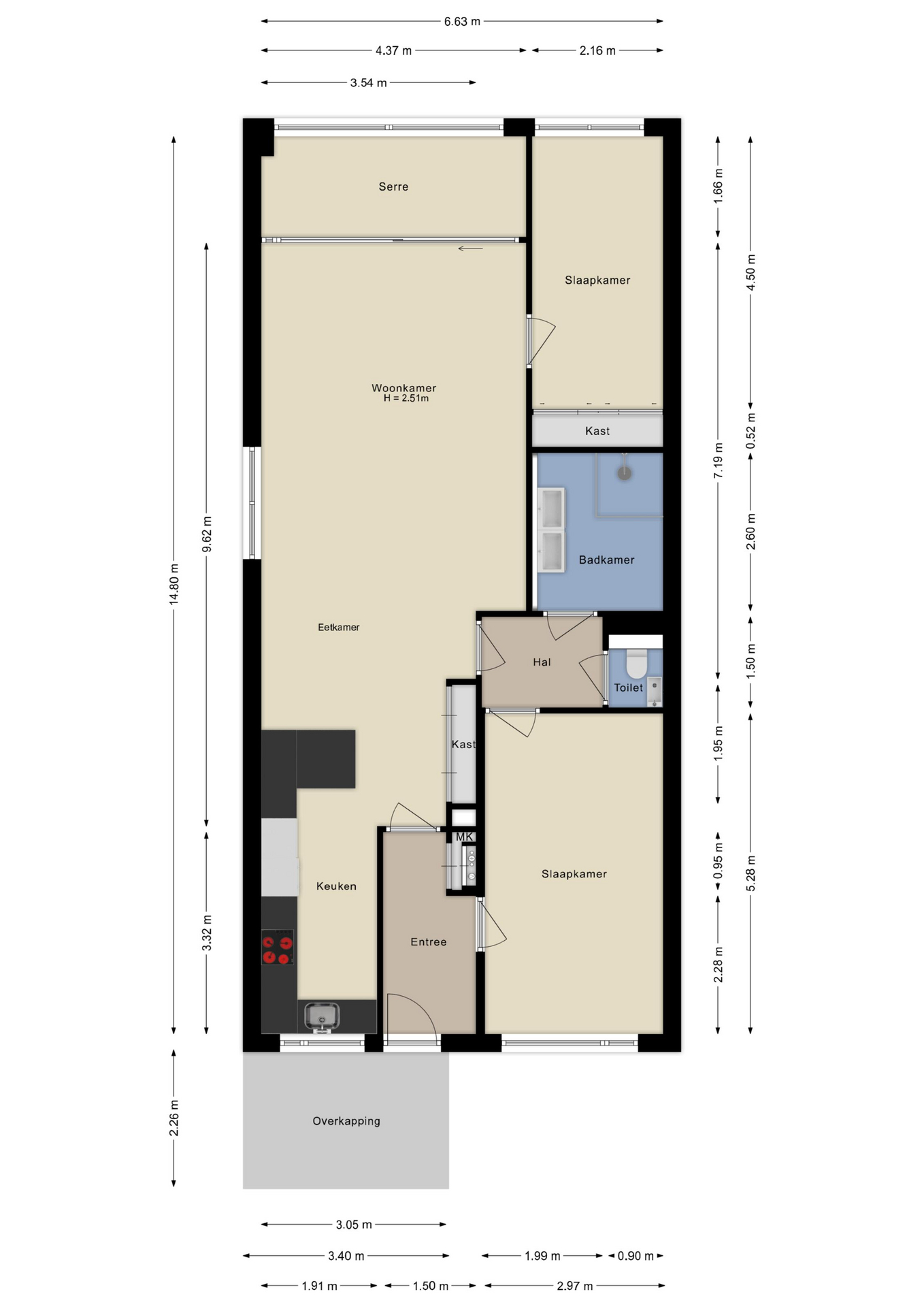 Via de entree kom je in de ruime hal die toegang biedt tot alle vertrekken. De lichte en grote woonkamer vormt het hart van de woning en loopt over in de serre – een ideale plek om te gebruiken als kantoor, leeshoek of extra zitruimte.