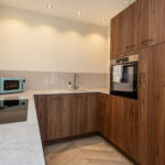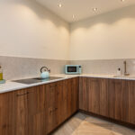 Aan de achterzijde bevindt zich de luxe open keuken uit 2022. Deze is uitgevoerd in een moderne U-opstelling en voorzien van hoogwaardige inbouwapparatuur. Vanuit de woonkamer bereik je tevens een tussenhal met modern toilet en praktische bergruimte met de cv-installatie en wasmachineaansluiting.