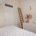 Via een luik in de slaapkamer is de bergvliering bereikbaar — ideaal voor koffers, seizoensspullen en extra opslag.