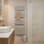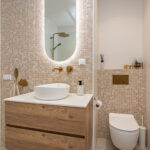 De badkamer is eveneens vernieuwd en modern uitgevoerd, met douche, wastafel, en zwevend toilet.