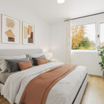 Bij binnenkomst kom je in de hal, van waaruit de interne berging, het toilet, de eerste slaapkamer en de woonkamer toegankelijk zijn. De ruime berging biedt plaats aan de cv-ketel en mechanische ventilatie box. De badkamer is uitgerust met een inloopdouche, wastafel, designradiator en aansluiting voor de wasmachine. Vanuit de badkamer is tevens de tweede slaapkamer bereikbaar. De slaapkamer aan de voorzijde is circa 12 m² groot, de tweede slaapkamer circa 10 m². De lichte woonkamer biedt voldoende ruimte voor een gezellige zithoek en eethoek, en grenst aan de open keuken met 4-pits inductiekookplaat, combi-oven, vaatwasser en afzuigkap. Vanuit de woonkamer heb je toegang tot het zonnige balkon op het zuidwesten – een heerlijke plek om te ontspannen.
