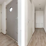 Centrale, afgesloten entree met intercominstallatie en brievenbussen. Via het trappenhuis of de lift bereik je het appartement.