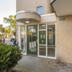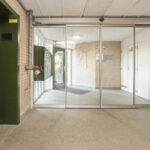 Centrale, afgesloten entree met intercominstallatie en brievenbussen. Via het trappenhuis of de lift bereik je het appartement.