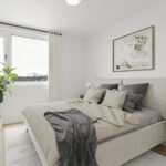 Bij binnenkomst kom je in de hal, van waaruit de interne berging, het toilet, de eerste slaapkamer en de woonkamer toegankelijk zijn. De ruime berging biedt plaats aan de cv-ketel en mechanische ventilatie box. De badkamer is uitgerust met een inloopdouche, wastafel, designradiator en aansluiting voor de wasmachine. Vanuit de badkamer is tevens de tweede slaapkamer bereikbaar. De slaapkamer aan de voorzijde is circa 12 m² groot, de tweede slaapkamer circa 10 m². De lichte woonkamer biedt voldoende ruimte voor een gezellige zithoek en eethoek, en grenst aan de open keuken. Vanuit de woonkamer heb je toegang tot het zonnige balkon op het zuidwesten – een heerlijke plek om te ontspannen.