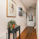 Overloop met vaste kasten (waaronder de opstelling van de cv-ketel) en een deur naar het zonnige dakterras.