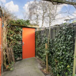De fraai aangelegde achtertuin ligt op het oosten en beschikt over een stenen berging en een afgesloten achterom. De tuin grenst aan een groenvoorziening, wat zorgt voor extra privacy.