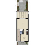 Aan de achterzijde bevindt zich een grote zolderkamer over de volle breedte van de woning. Ook deze kamer kan indien gewenst worden opgesplitst in twee slaapkamers.
