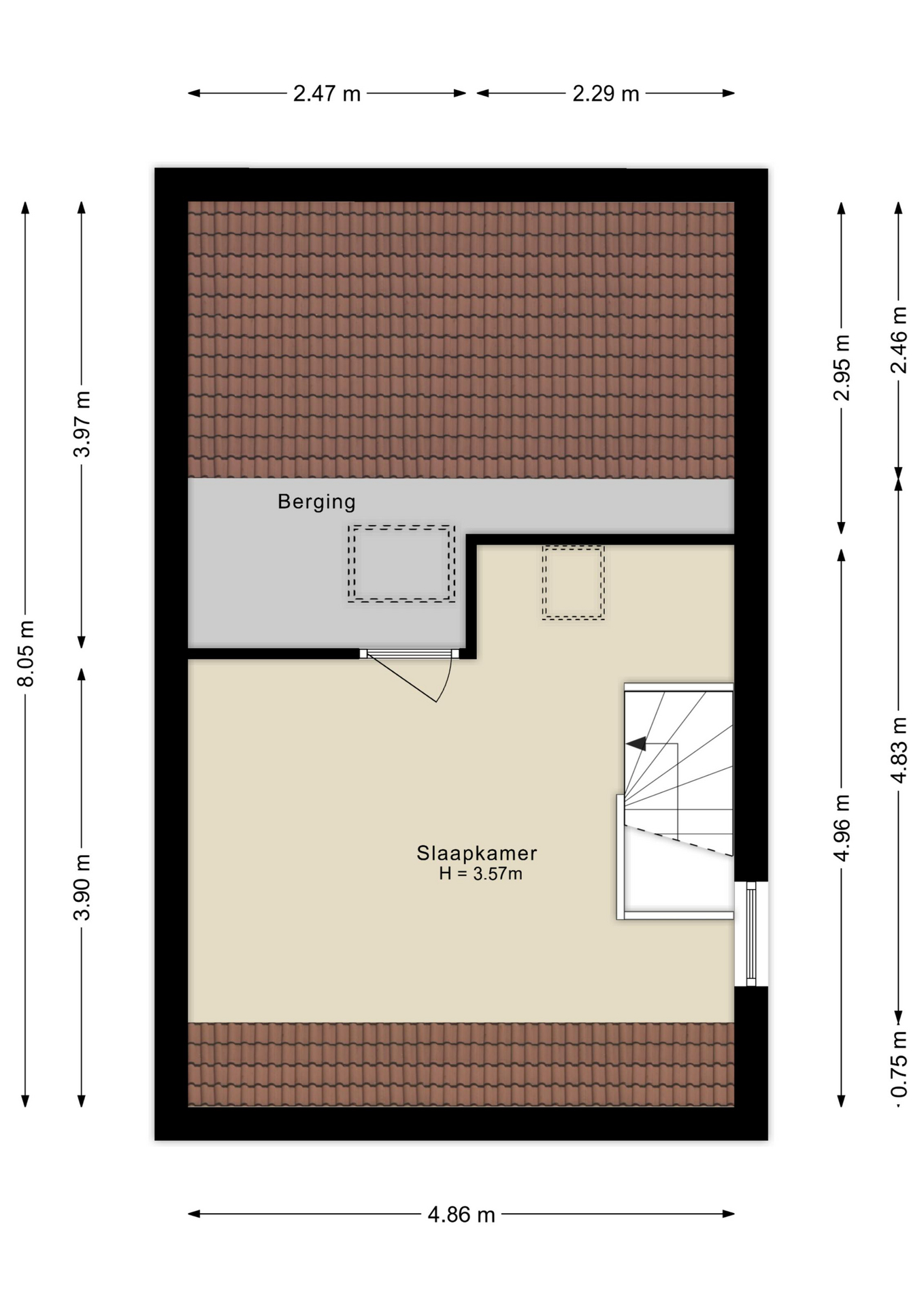 Op deze verdieping bevindt zich de royale vierde slaapkamer.