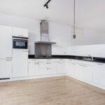 De woonkamer staat in halfopen verbinding met de woonkeuken. Deze heeft een afmeting van circa 22m2 en is voorzien van een groot en modern keukenblok in hoekopstelling met granieten aanrechtblad en Siemens inbouwapparatuur, te weten; koel-/vriescombinatie, gaskookplaat, combimagnetron, RVS-recirculatiekap en vaatwasser.