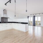 - Royale woonkamer en woonkeuken met houtenvloerdelen en vrij uitzicht;
