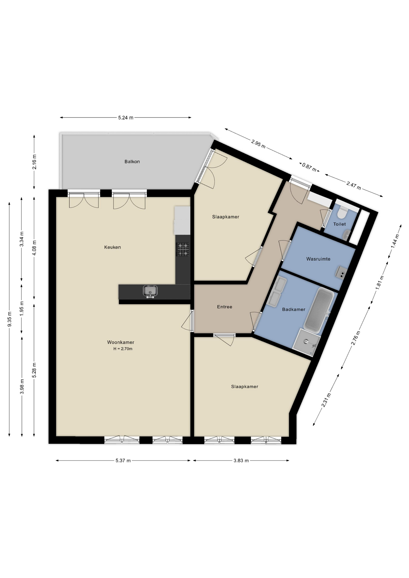 - Ruim balkon van circa 12m2, gelegen op het zuidwesten