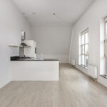 De royale living heeft een zeer hoog plafond en is heerlijk licht door de zeer grote raampartijen en het extra Velux-dakraam. Het weidse uitzicht over de grachten en het grote plein is onovertroffen.