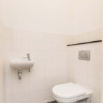 Hal met videofoon en modern afgewerkte toiletruimte met hangend closet en fonteintje. Tevens is hier de grote inpandige berging die is voorzien van de CV-opstelling, wasmachine- en drogeraansluiting en mechanische ventilatie-unit.
