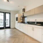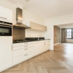 De living loopt haast ongemerkt over in de halfopen keuken, die is voorzien van een groot en modern keukenblok met granieten aanrechtblad en Siemens inbouwapparatuur, te weten; koel-/vriescombinatie, gaskookplaat, combimagnetron, RVS-recirculatiekap en vaatwasser. Vanuit de keuken is middels openslaande deuren het ruime balkon van circa 17 m2 te bereiken.