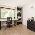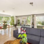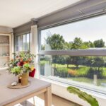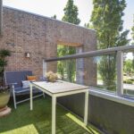 Via de schuifpui bereik je het zonnige balkon op het zuidwesten. Dit is de ideale plek om na het werk te ontspannen in de zon en te genieten van het uitzicht over de rustige, groene omgeving. Dankzij de elektrische zonwering blijft het binnen ook op warme dagen aangenaam. En met de airconditioning (die ook verwarmt) geniet je het hele jaar door van een comfortabel binnenklimaat.