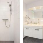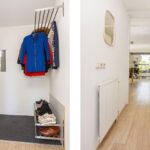 Aan de achterzijde bevindt zich een gang met toegang tot de twee ruime slaapkamers (ca. 12 m² en 15 m²), een separaat toilet, de badkamer met douche en wastafelmeubel met twee aparte kranen, en een inpandige berging met wasmachine-aansluiting. Dankzij de ligging aan de noordkant blijven de slaapkamers in de zomer heerlijk koel.