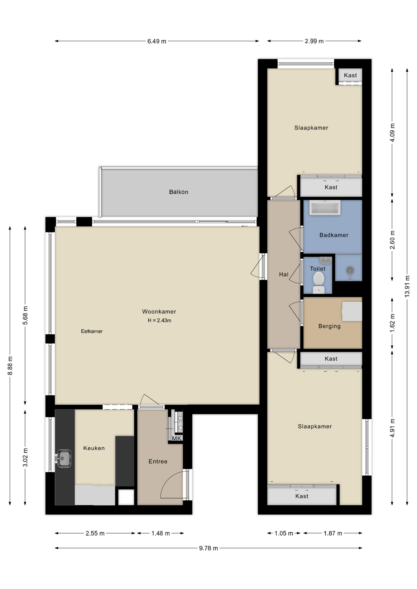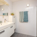De halfopen keuken is netjes en functioneel ingericht, en voorzien van alle gemakken zoals een Miele vaatwasser en een recent vernieuwde inductiekookplaat. Wil je liever een open leefkeuken of een extra kamer? Dan biedt deze ruimte volop mogelijkheden om naar eigen inzicht aan te passen.