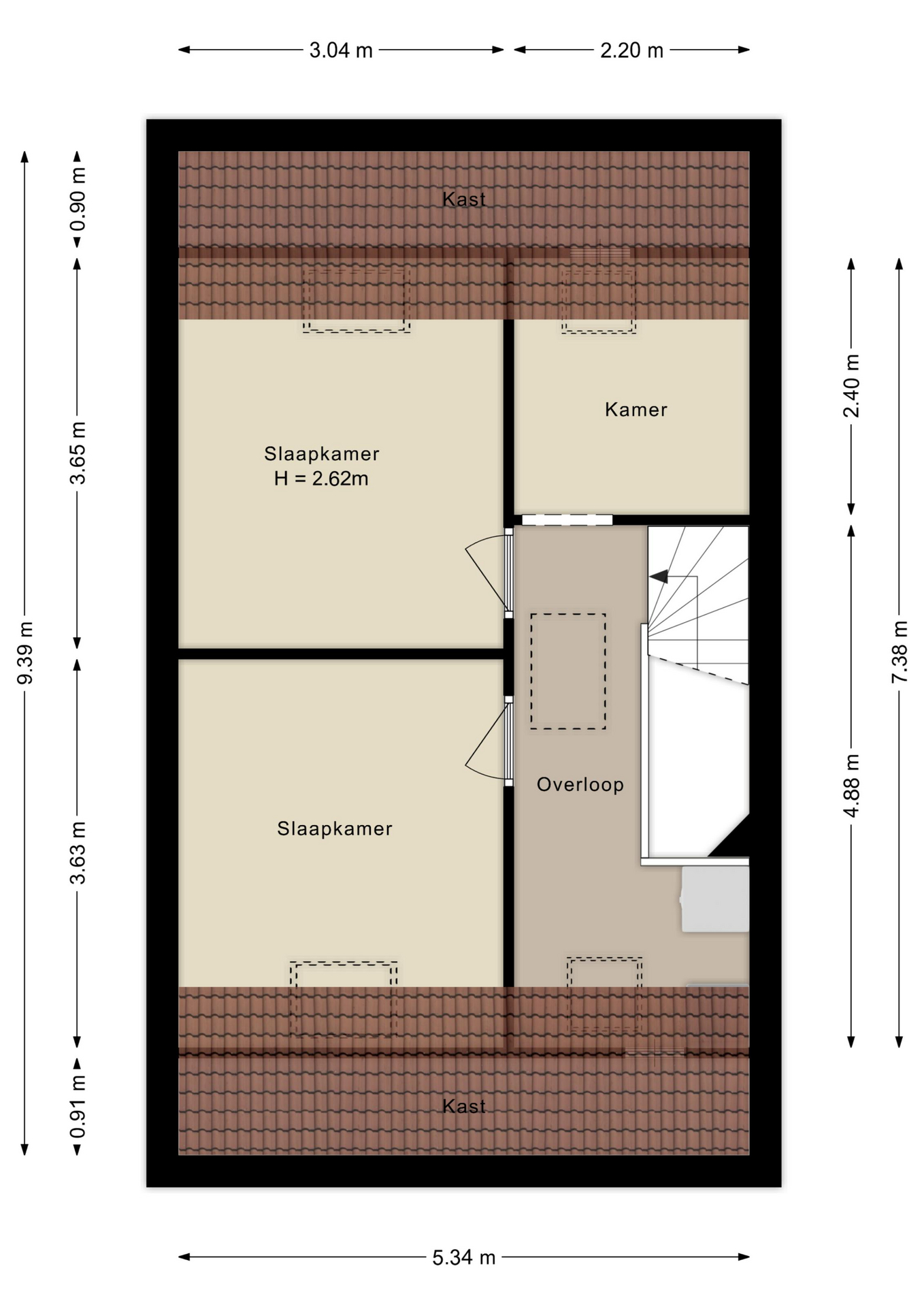 De lichte en ruime zolder is een droom voor iedereen die extra ruimte zoekt. Hier vind je een voorportaal en twee slaapkamers. Dankzij de Velux-ramen valt er veel daglicht binnen. In het voorportaal vind je de aansluiting voor de wasmachine en droger. Extra bergruimte is hier volop aanwezig, onder andere door knieschotten over de gehele breedte en een handige vliering met vlizotrap.
