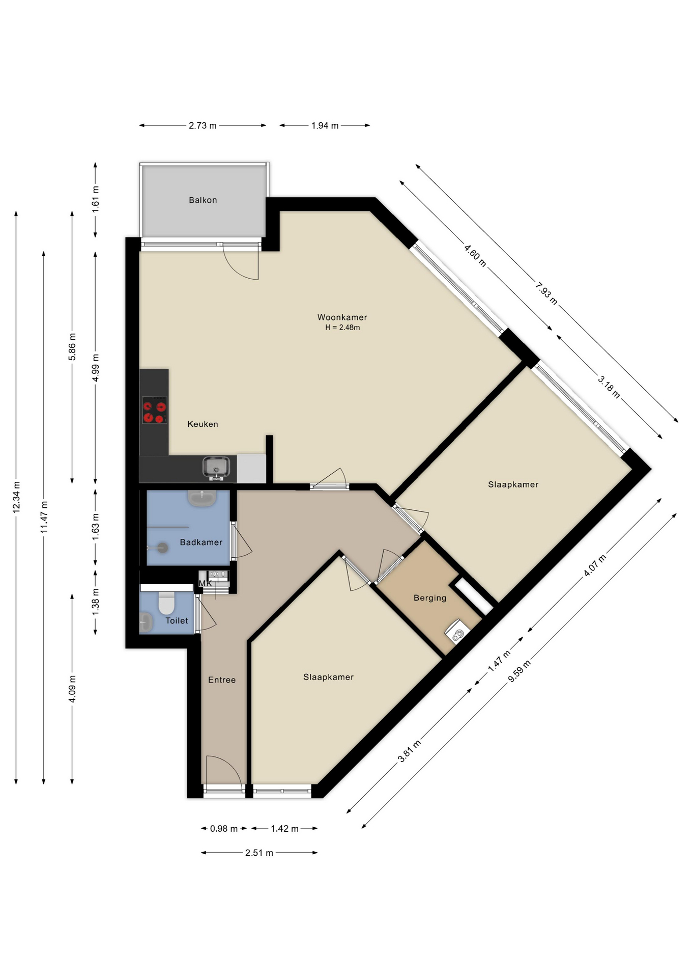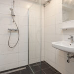 Royale hal met toegang tot alle vertrekken. De lichte woonkamer met balkon op het westen staat in open verbinding met de moderne keuken, die is uitgerust met diverse inbouwapparatuur: inductiekookplaat, afzuigkap, combi-oven, vaatwasser en koel-vriescombinatie. Verder vind je een nette badkamer met inloopdouche, wastafel met spiegel en handdoekenradiator, twee volwaardige slaapkamers (één aan de voorzijde en één aan de achterzijde), en een inpandige berging met cv-ketel en wasmachineaansluiting. Daarnaast beschikt de hal over een apart zwevend toilet met fontein en de meterkast.