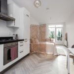 Als je de studio binnenkomt, dan heb je aan de rechterzijde de badkamer met douchecabine, wastafel en toilet. Door de grote raampartijen beschik je over een heerlijk lichte woon-/slaapkamer. De keurige, open keuken is aan de achterzijde gesitueerd en is voorzien van gaskookplaat, afzuigkap, oven, koelkast, vriezer en vaatwasser. Het appartement is keurig afgewerkt met glad gestuukte en onlangs geschilderde wanden/plafonds en een nieuwe laminaatvloer.