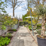 De achtertuin is een zeldzaam sterke troef. Opvallend diep, geheel vrij gelegen aan de achterzijde en met uitzicht op de kerk. Door het vele groen, de volwassen beplanting en indeling ervaar je hier rust en privacy.
