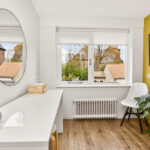 Dankzij de dakkapel over de volle breedte is dit een volwaardige extra woonlaag. Geschikt als slaapkamer, werkplek of combinatie daarvan. Wat deze verdieping onderscheidt, is het uitzicht op de kerk, een zeldzaam perspectief dat zorgt voor een open en ruimtelijk gevoel. Dat maakt dat elke dag weer nét even anders is.