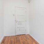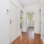 Entree/hal met intercominstallatie, meterkast en cv-opstelling. Separaat toilet met fontein en toegang tot de overige ruimtes. De woonkamer aan de voorzijde heeft een grote raampartij met uitzicht over het grasveld en beschikt over een vaste kast. Via de dubbele schuifdeuren bereik je de aangrenzende kamer die kan dienen als slaap-, eet- of werkkamer en toegang biedt tot het balkon aan de voorzijde (zuidwest).