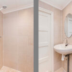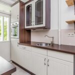 Aan de achterzijde bevinden zich twee slaapkamers. De grootste slaapkamer is geschikt voor een tweepersoonsbed en kledingkast, terwijl de tweede kamer ideaal is als logeer- of werkkamer. De keuken in dubbele rechte opstelling is voorzien van diverse inbouwapparatuur: 4-pits gaskookplaat, afzuigkap, oven, koelkast, vaatwasser en voldoende kastruimte. Vanuit de keuken is er toegang tot het tweede balkon, gelegen aan de achterzijde (noordoosten). De badkamer is modern ingericht met een wastafel, douche, handdoekenradiator en een verlaagd plafond met inbouwspots.