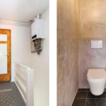 Overloop met opstelplaats van de CV-ketel, tweede toiletruimte met hangend closet en luik naar de bergvliering.