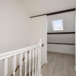 Tweede etage: middels een gerenoveerde trap en prachtige balustrade kom je op de overloop met opstelplaats voor c.v.-ketel en witgoedaansluitingen, ruime slaapkamer (ca. 18 m²) met dakraam en dakkapel, veel bergruimte aanwezig.