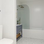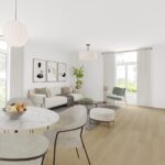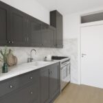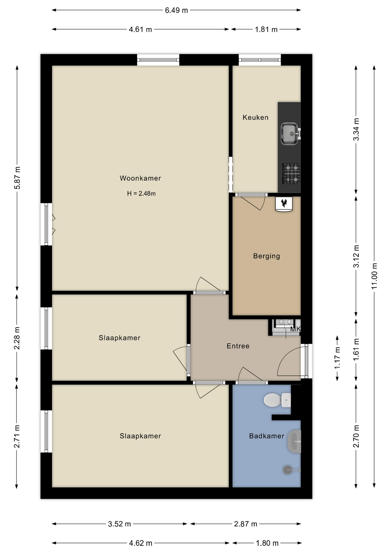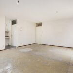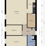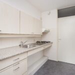 Vanuit de centrale hal bereiken we via een lange gang het appartement. Bij binnenkomst komen we in een hal/entree. Vanuit de hal zijn de badkamer, de woonkamer én de twee slaapkamers bereikbaar. De badkamer beschikt over een douche, wastafel en toilet. De dichte keuken, bereikbaar vanuit de woonkamer, is basis afgewerkt. Naast de keuken is de berging / technische ruimte gelegen. Hier bevinden zich o.a. de CV ketel en de wasmachine aansluiting.