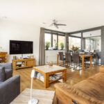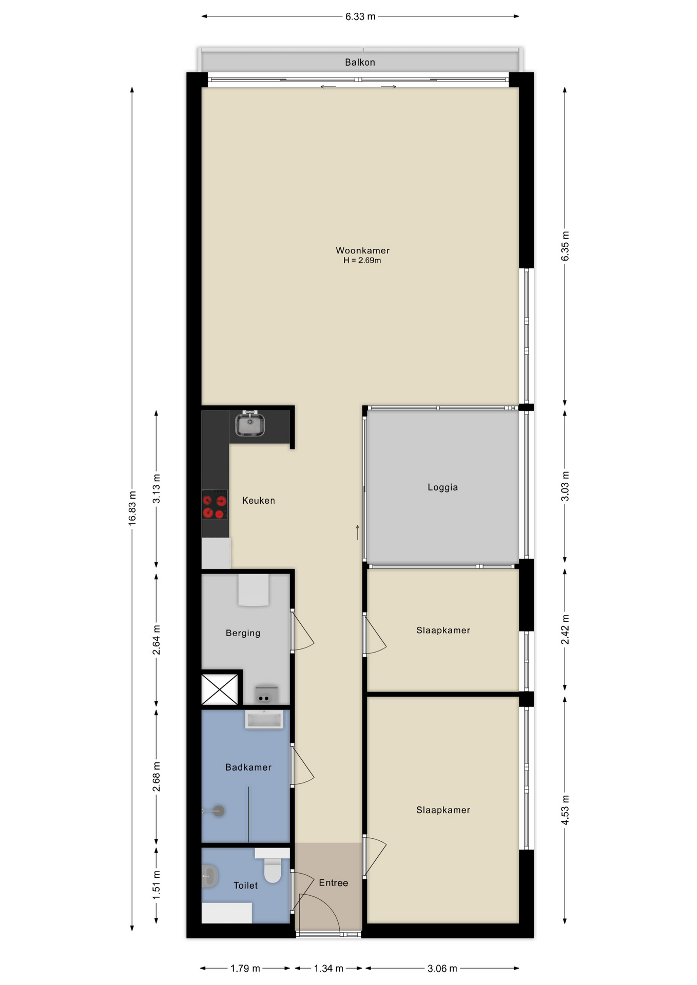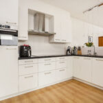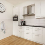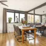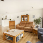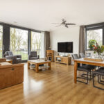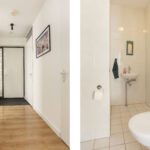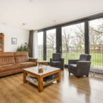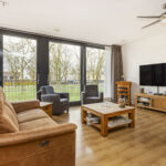 Welkom in de ruime hal die toegang biedt tot alle vertrekken. De woonkamer van circa 40 m² voelt heerlijk licht en open dankzij de grote ramen en de halfopen keuken, voorzien van diverse inbouwapparaten. Via de schuifpui stap je zo de riante loggia op: een fijne plek om het hele jaar door te genieten van de groene omgeving.