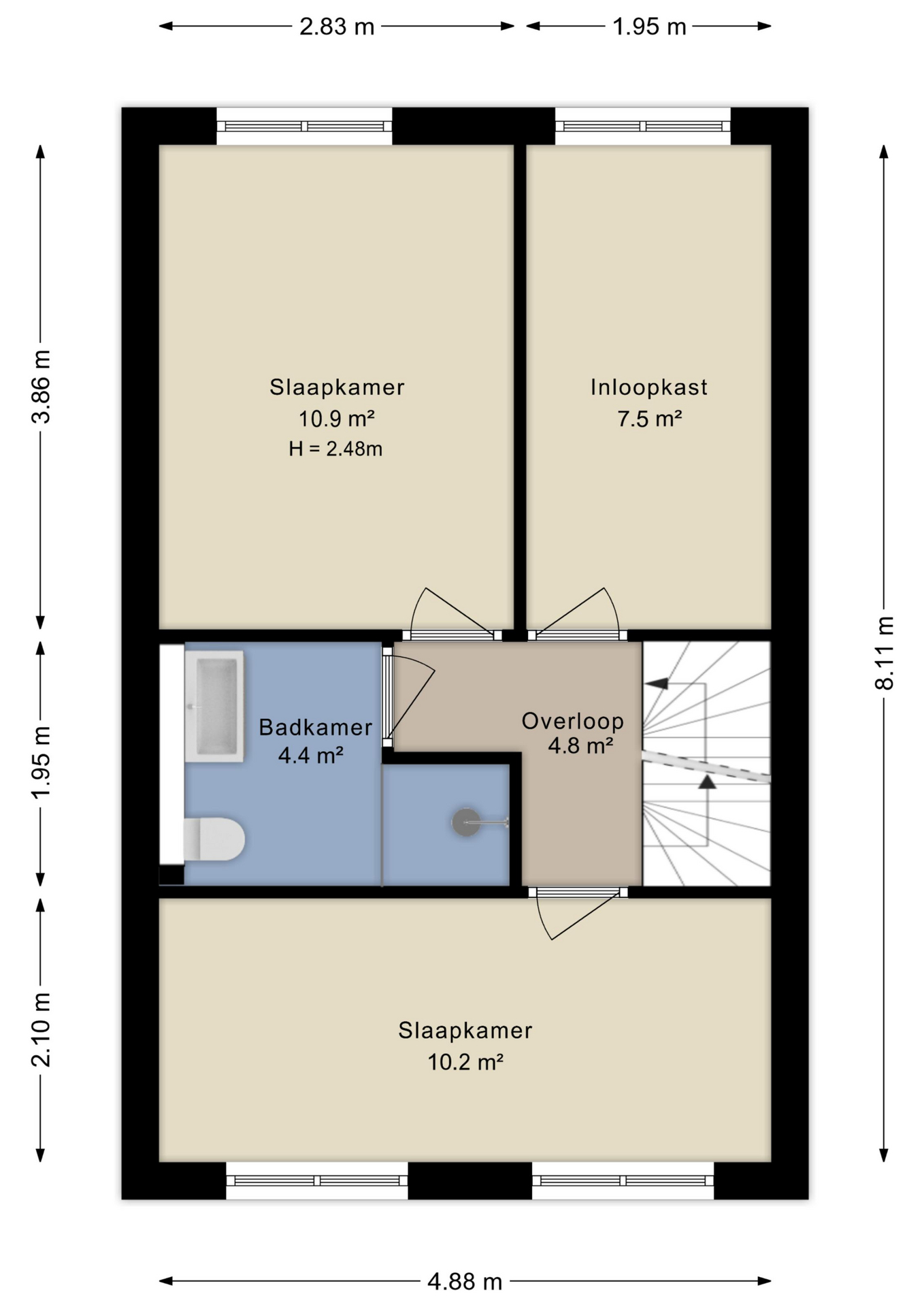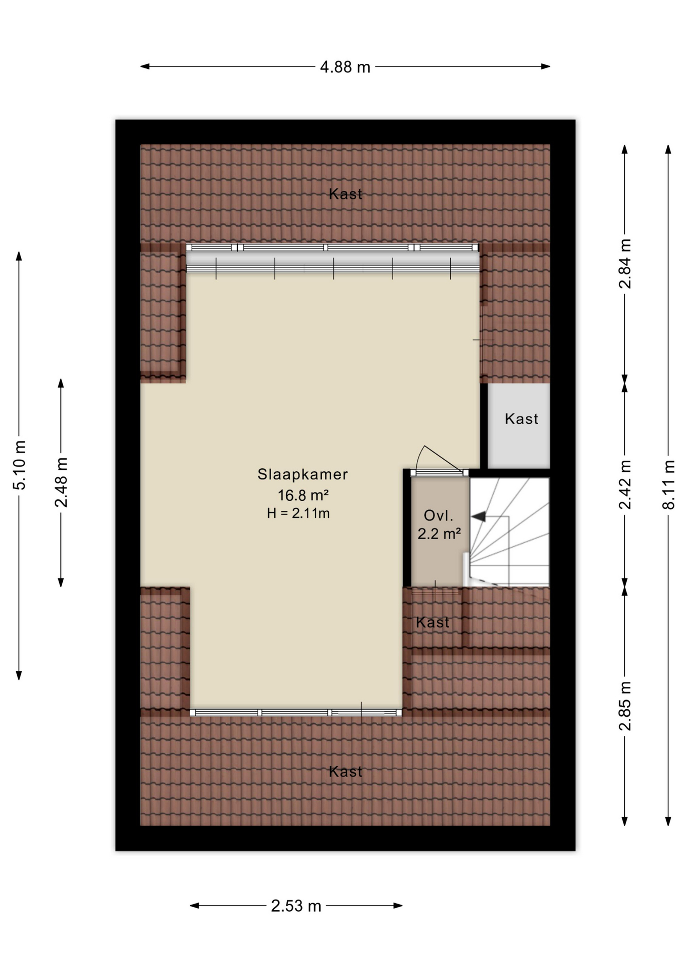 De tweede verdieping is een volwaardige extra woonlaag met een royale slaapkamer, dakkapellen aan zowel de voor- als achterzijde, veel bergruimte en een nette afwerking. Ideaal als master bedroom, werkruimte of hobbykamer.