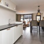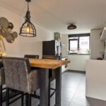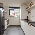 Aan de voorzijde van de woning is de open keuken gesitueerd. Deze is in 2018 vernieuwd en voorzien van o.a. een composiet aanrechtblad, inductie kookplaat met RVS-afzuigkap, vaatwasser, oven, losse koel-/vriescombinatie en veel kast-/en werkruimte.