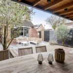De achtertuin is eveneens fraai aangelegd en geeft u diverse mogelijkheden. Zo kunt u héérlijk zitten onder de recent geplaatste overkapping (2020) of kunt u de zon opzoeken op het terras. Door de ligging op de hoek is de tuin extra breed met een afmeting van ca. 8 meter.