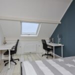 Op de tweede verdieping is daarnaast een vierde slaapkamer gesitueerd. Deze slaapkamer is eveneens ruim van afmeting en o.a. voorzien van bergruimte achter de schotten, Velux-dakraam en een laminaatvloer.