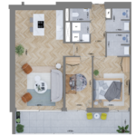 Bij Zuidkant geniet je van slim ontworpen appartementen, allemaal zuidelijk en breed georiënteerd voor maximaal zonlicht en een overvloed aan natuurlijke lichtinval. Het appartement heeft een royaal balkon dat zich uitstrekt over de gehele breedte van de woning, waardoor je een buitenruimte hebt van minstens 19 m².