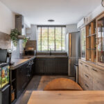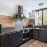 De L-vormige keuken aan de voorzijde is netjes en compleet uitgerust met o.a. een inductiekookplaat, afzuigkap, oven, koel-vriescombinatie en vaatwasser. Vanuit het keukenraam heb je een leuk uitzicht over de speeltuin, ideaal om spelende kinderen in de gaten te houden.