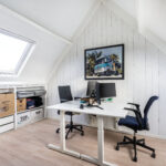 De zolderverdieping biedt een verrassend ruime vierde kamer met grote dakramen, ideaal als extra slaapkamer, werkplek of hobbyruimte. Op de overloop vind je de aansluitingen voor wasmachine en droger, de cv-installatie (Remeha Avanta CW4, 2023) en de mechanische ventilatie.
