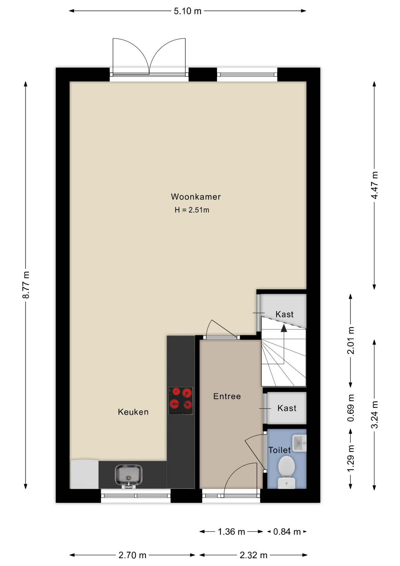 Via de verzorgde voortuin met gezellige zitplek stap je de woning binnen. In de ruime hal bevinden zich de toiletruimte en trapopgang. Vervolgens kom je in de lichte, tuingerichte woonkamer met grote raampartijen en een praktische trapkast. De laminaatvloer en de open indeling zorgen voor een warme, eigentijdse sfeer.