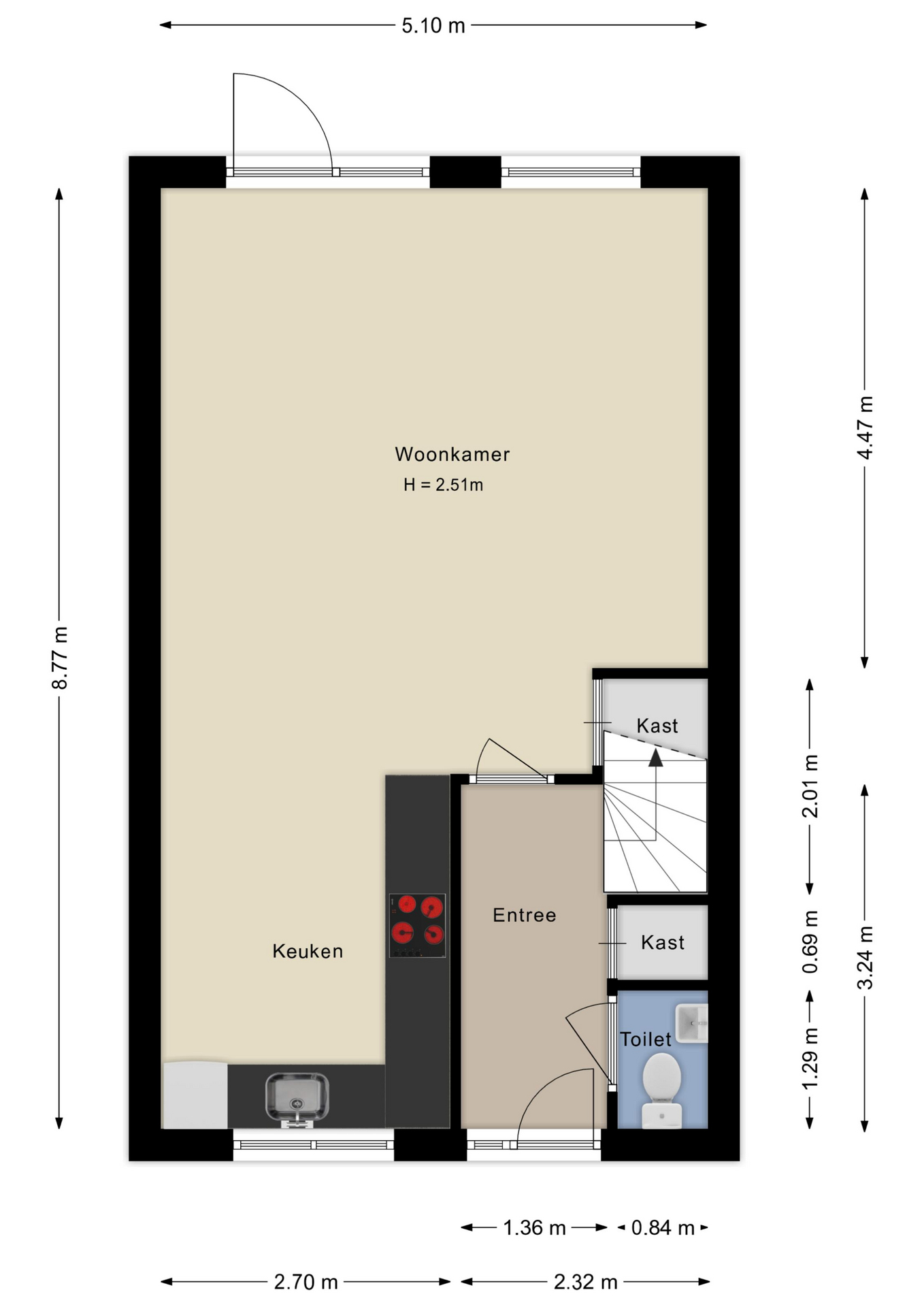 Via de verzorgde voortuin met gezellige zitplek stap je de woning binnen. In de ruime hal bevinden zich de toiletruimte en trapopgang. Vervolgens kom je in de lichte, tuingerichte woonkamer met grote raampartijen en een praktische trapkast. De laminaatvloer en de open indeling zorgen voor een warme, eigentijdse sfeer.