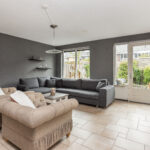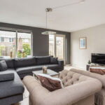 Aan de achterzijde bevindt zicht de ruime woonkamer, ideaal voor een lekkere zithoek. De achterzijde beschikt over grote raampartijen, ideaal voor veel lichtinval. Via de loopdeur kom je uit in de achtertuin.