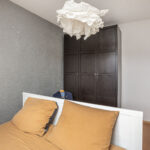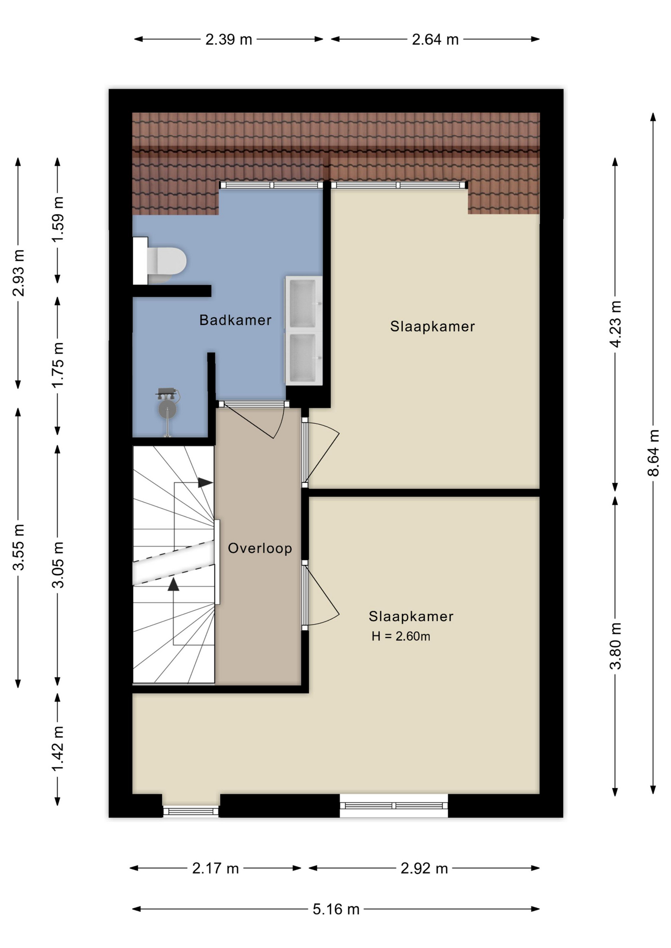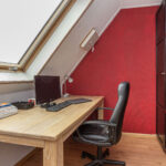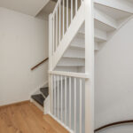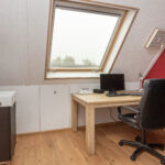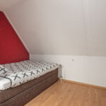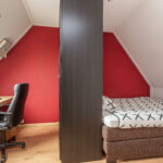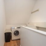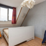 De tweede verdieping is slim ingedeeld en biedt een ruime voorzolder met daarbij de aansluitingen voor de wasmachine en droger. Via de voorzolder kom je uit bij de derde slaapkamer. Zowel voorzien van een functionele wasbak als een gezellige slaapkamer met werkruimte. De wasbak is ideaal voor praktische doeleinden in het dagelijks gebruik, terwijl de slaapkamer een rustige ruimte biedt om te ontspannen. Daarnaast zorgt de knieschottenruimte voor een efficiënte benutting van de dakruimte, waardoor extra opbergruimte of een andere creatieve invulling mogelijk is. Dit alles maakt de tweede verdieping tot een praktische en comfortabele leefruimte.